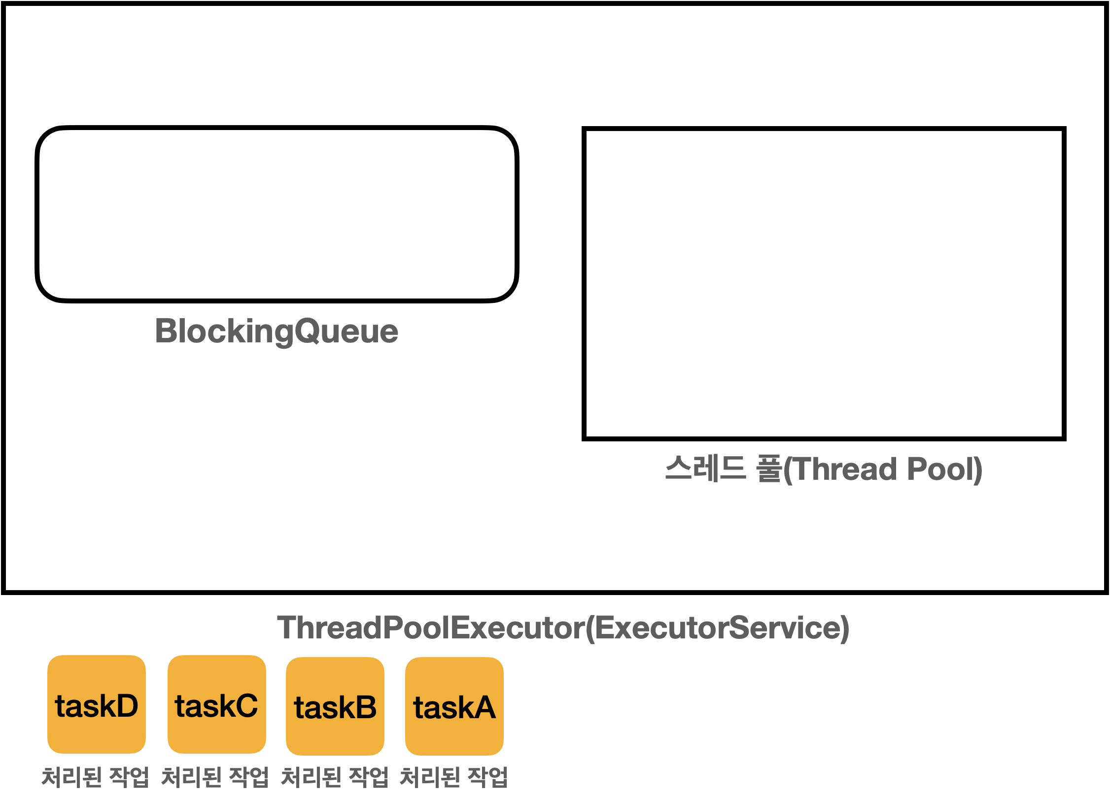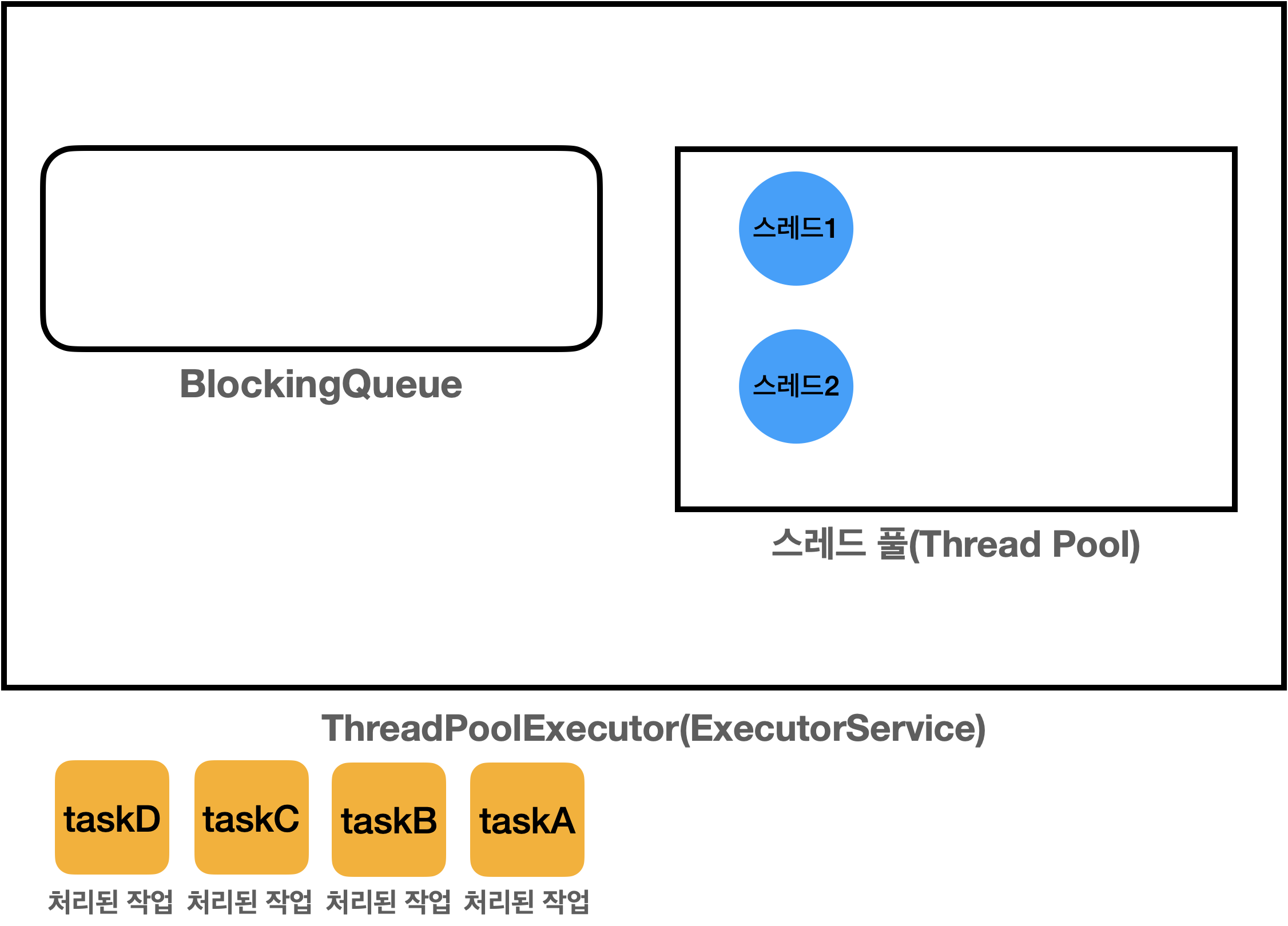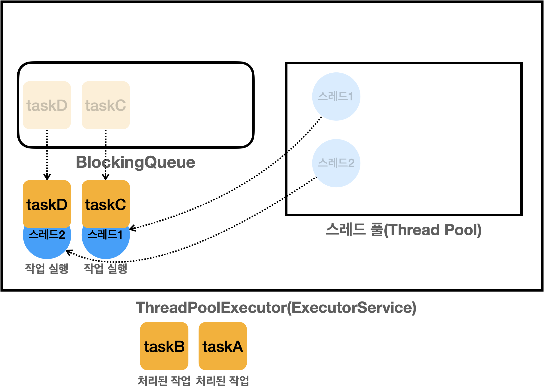 그렇담 소비자에서 (풀에 담겨있는 스레드)는 이후에 소비자 중에 하나가 BlockingQueue 에 담긴 작업을 받아서 처리하는 구조입니다.